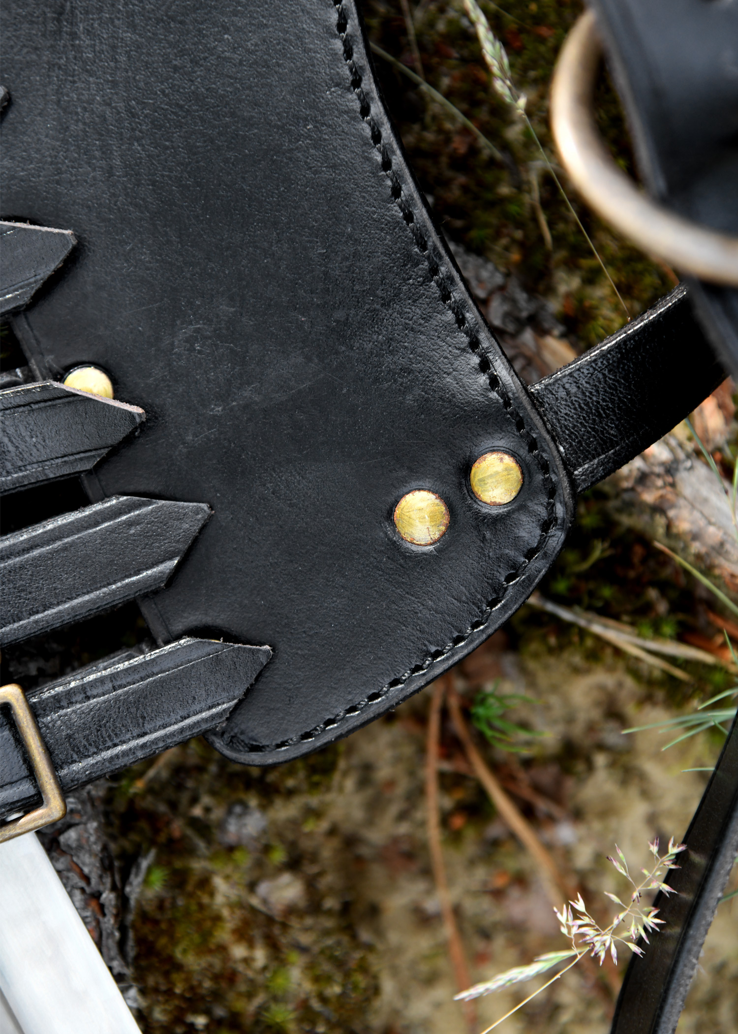 Cintura con portaspada Adatto per rapier e spade con larghezza massima della lama di 7 cm. Realizzato in pelle nera spessa 4 mm. Dettagli: