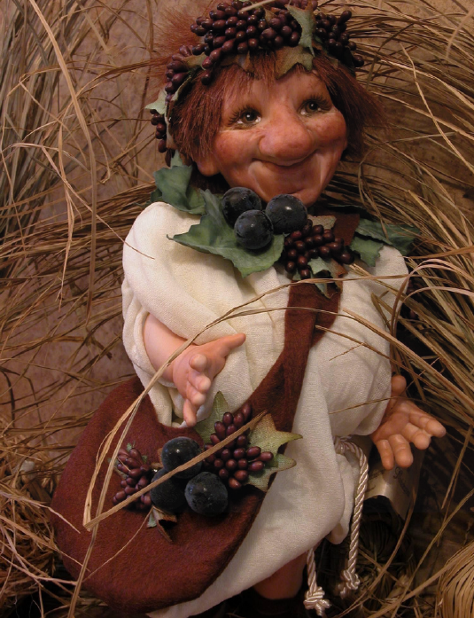 Bacco, gnomo in porcellana. Altezza 26cm. Personaggio in porcellana bisquit Montedragone. Si tratta di un prodotto artigianale, interamente realizzato a mano. La foto deve ritenersi indicativa, poiché ogni pezzo è soggetto a lievi modifiche (tessuti e rifiniture), che non ne alterano però le caratteristiche peculiari, aumentandone il valore. Su richiesta e con un sovrapprezzo è possibile avere Bacco con occhi di vetro. Tempo di produzione: 14 giorni lavorativi circa
