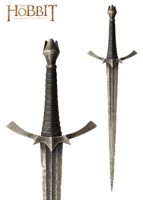 Pugnale brandito dai Nazgûl, gli Spettri dell'Anello (Ring-Wraiths), chiamati anche Cavalieri Neri o Cavalieri Alati, sono personaggi di Arda, l'universo immaginario fantasy creato da J.R.R. Tolkien: si tratta di nove spettri malvagi sottomessi a Sauron. Spessore Lama: 5 mm - Acciaio Lama: inox, non affilata - Peso: 800gr Supporto in legno. Impugnatura: in metallo solido con rivestimento in pregiato cuoio. - Guardia lama e pomello antichizzato. La spada presenta lama in acciaio inox e manico in metallo solido. L'impugnatura è ornata con incisioni con l massima attenzione nei dettagli. Comprende anche un espositore a parete in legno con motivi da Lo Hobbit - Un Viaggio Inaspettato e il certificato di autenticità. Si presenta con un espositore a parete in legno (istruzioni di montaggio inclusi), comprende un certificato di autenticità. Impugnatura: in metallo solido con rivestimento in pregiato cuoio.
