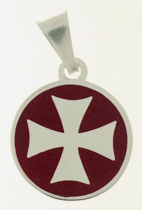 Ciondolo Croce Templare rossa su sfondo bianco e nero, realizzato in metallo placcato argento trattamento anallergico; viene fornito ...