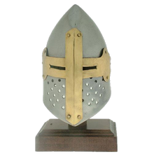 Elmi Medievali produzione e vendita, tutte le tipologie di elmi medievali: Elmo Cervelliera, Spangenhelm, elmo conico normanno, Elmo Bacinetto, Elmo Barbuta, Elmi da Combattimento, Grande Elmo Templare, Elmo da cavaliere, elmo celata alla veneziana, cappello di ferro.