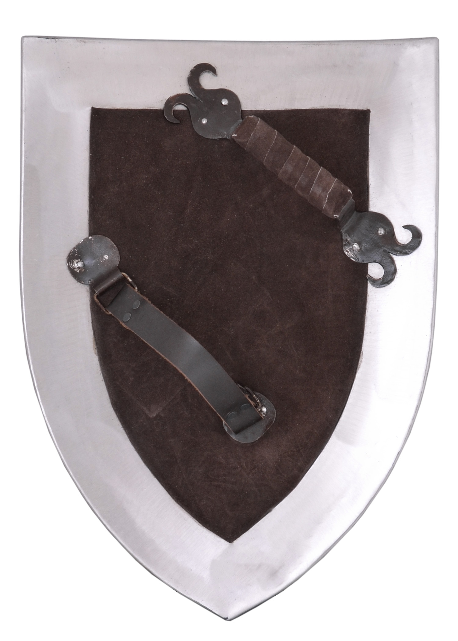 Notice: Undefined property: TableProducts::$product_fields in /var/www/vhosts/avalonceltic.com/httpdocs/templates/t4_blank/html/com_virtuemart/productdetails/default.php on line 183 Scudo medievale in acciaio Questo scudo realizzato da Ulfberth® è estremamente robusto e spesso, è ideale per le rievocazioni storiche e combattimenti a contatto completo. Forgiato a mano in lamiera d'acciaio spessa 2 mm, i bordi arrotondati, la comoda imbottitura posteriore e una solida maniglia rendono questo scudo un'eccellente prodotto, che garantisce massima protezione. La parte anteriore è lucidata e può essere facilmente dipinta con il proprio stemma, se desiderato. Dettagli: Questo è un prodotto di ULFBERTH®.