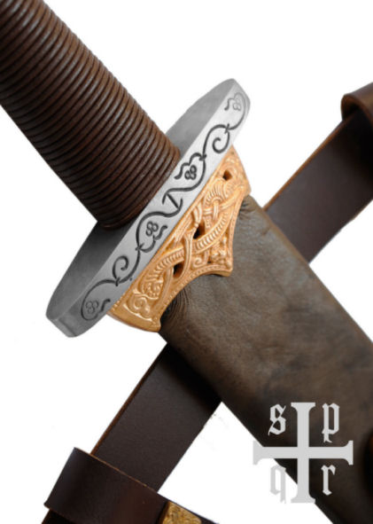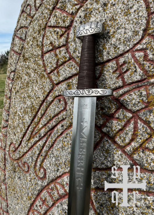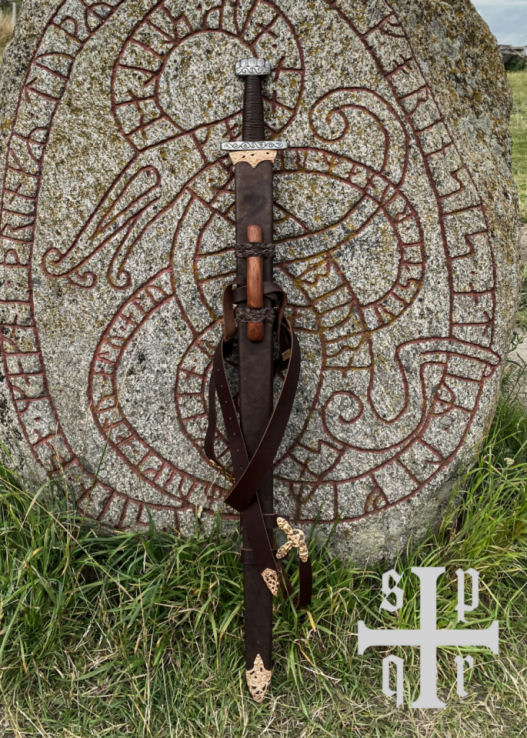 Questa bellissima spada a una mano dell'età vichinga è modellata su un ritrovamento di palude datato alla metà. IX secolo e classificato come tipo "K" secondo la tipologia delle spade vichinghe di Petersen. Il pezzo originale, straordinariamente ben conservato, è stato trovato a Ballinderry (Irlanda) nel 1928 ed è ora esposto al National Museum of Ireland di Dublino.
