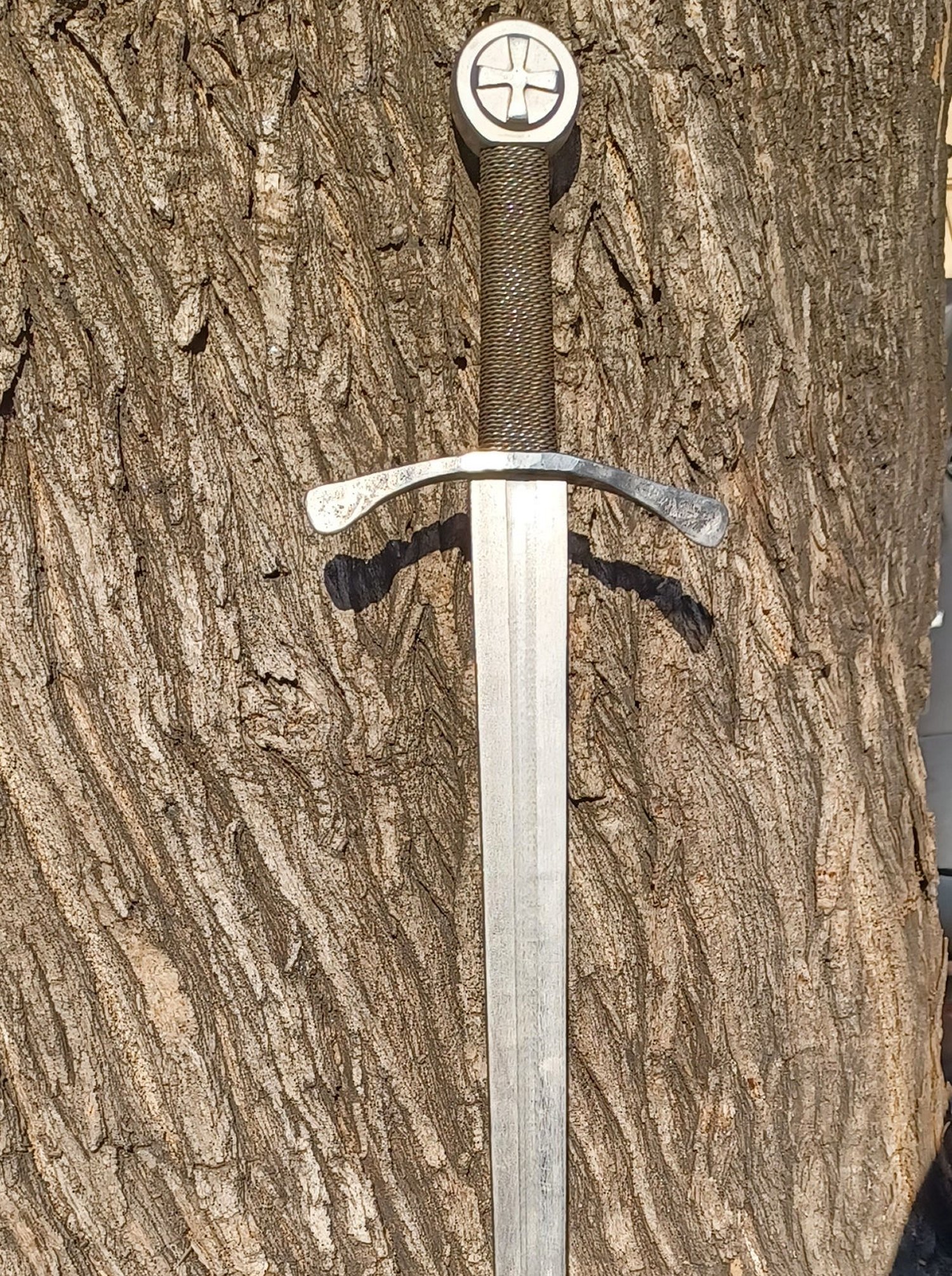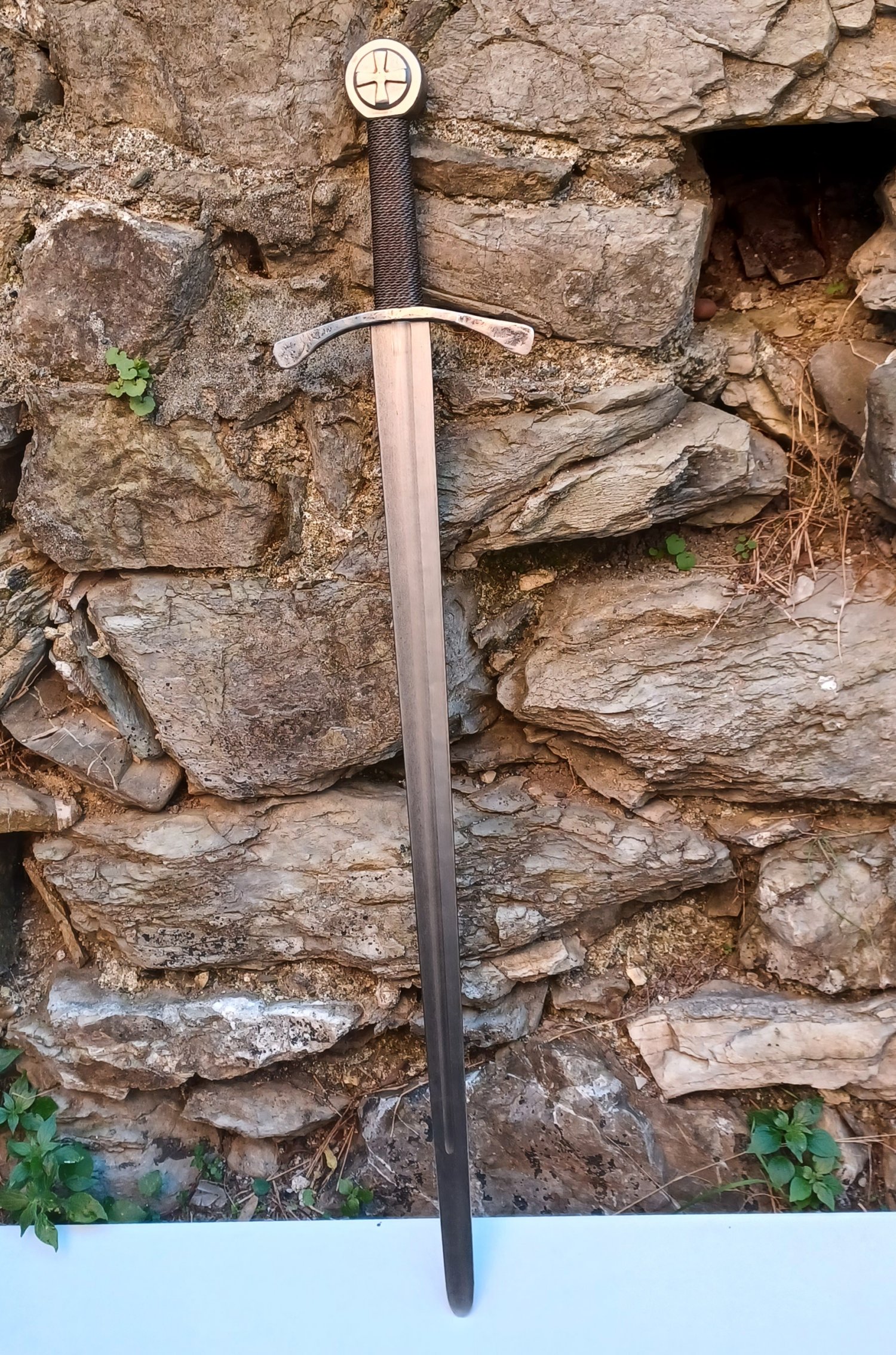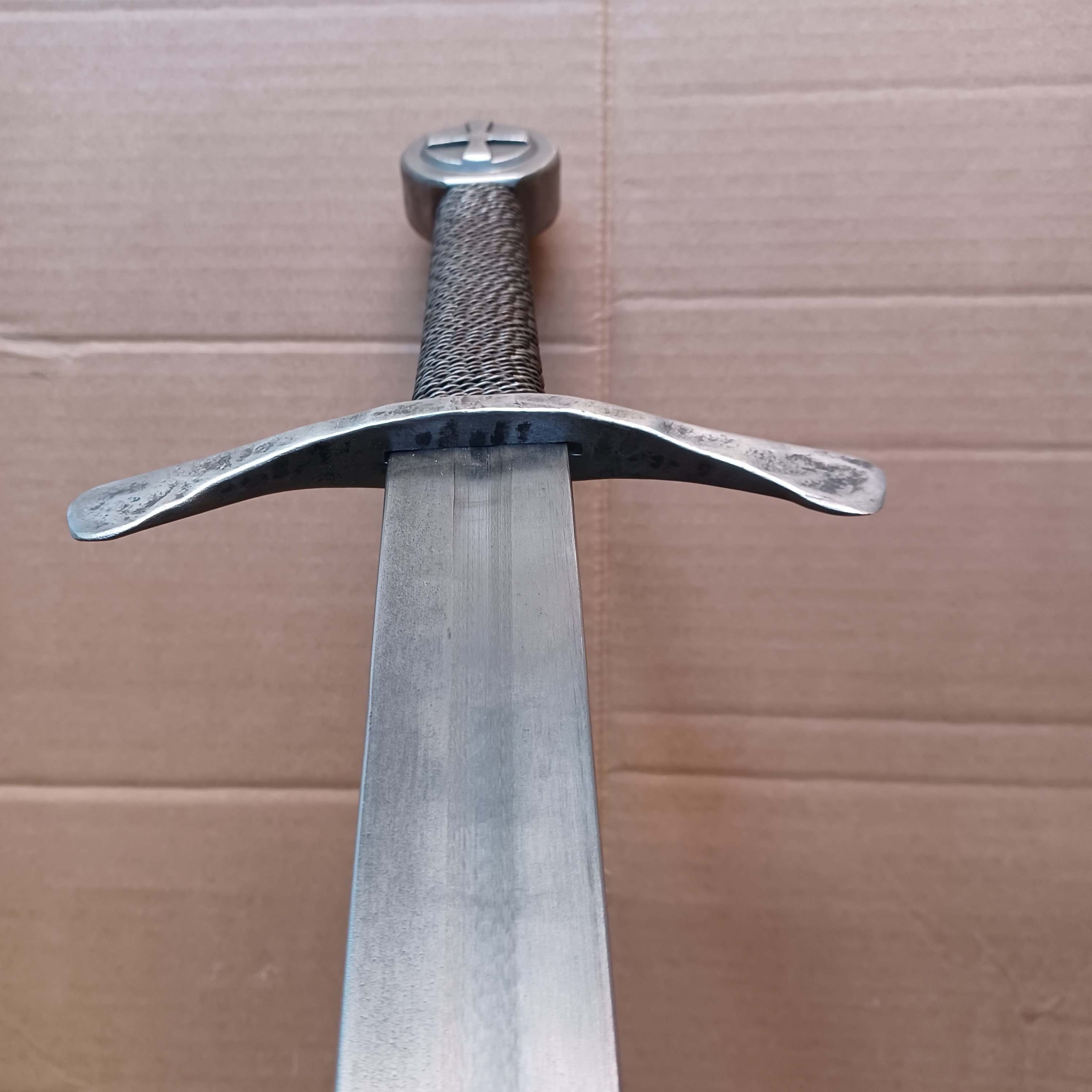 Spada forgiata a mano. Spada crociata templare. Lunghezza totale: cm 88