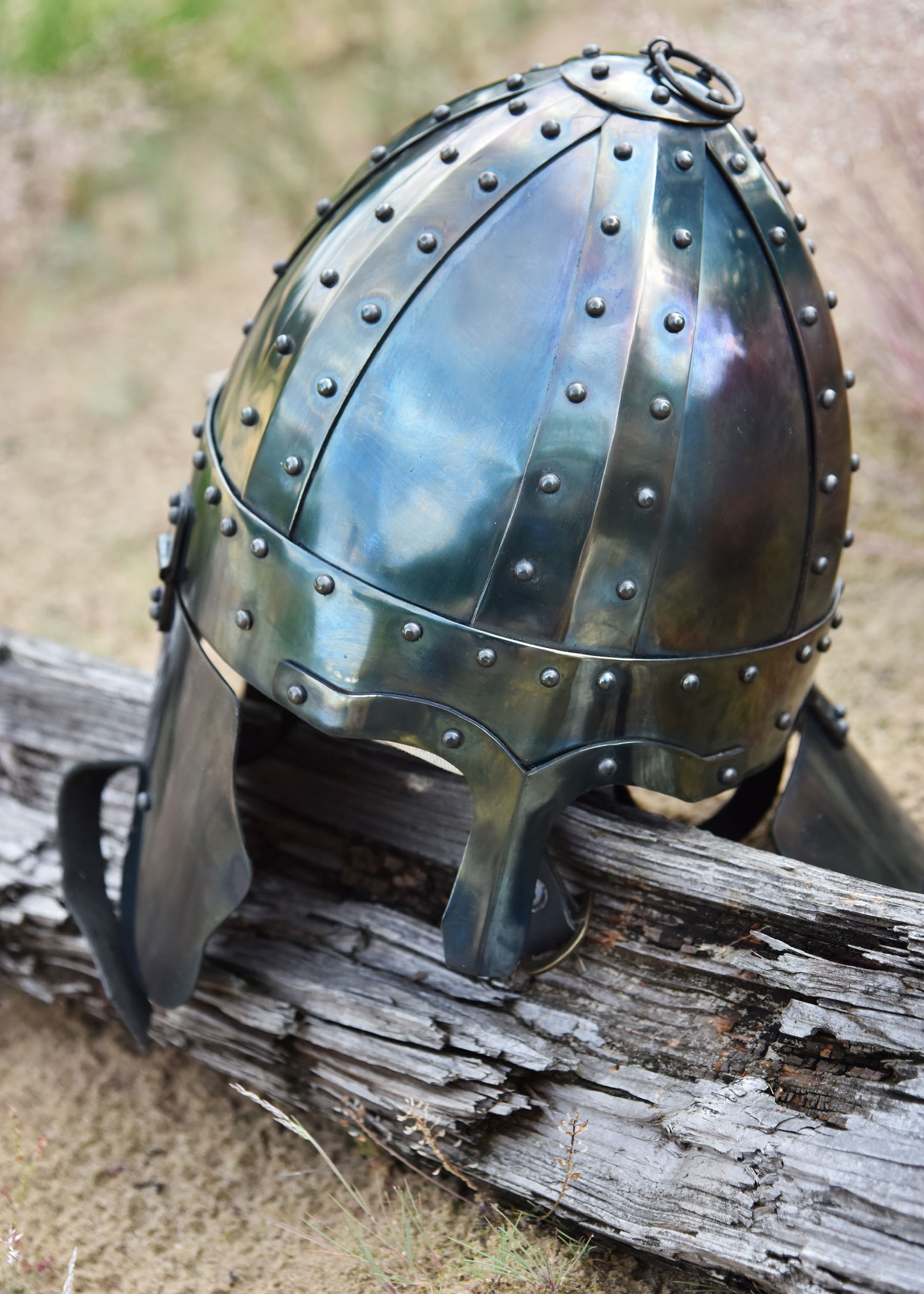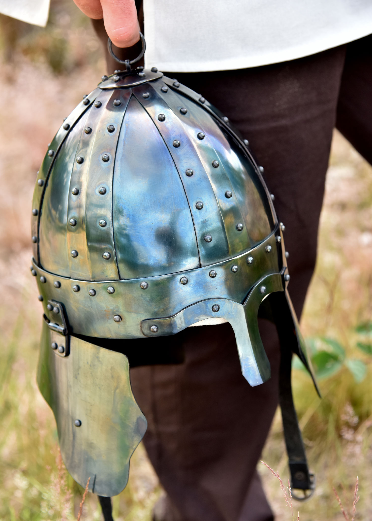 Una replica molto autentica di uno spangenhelm tardo romano che è stato trovato a Deir el-Medina, un antico insediamento operaio di Tebe.