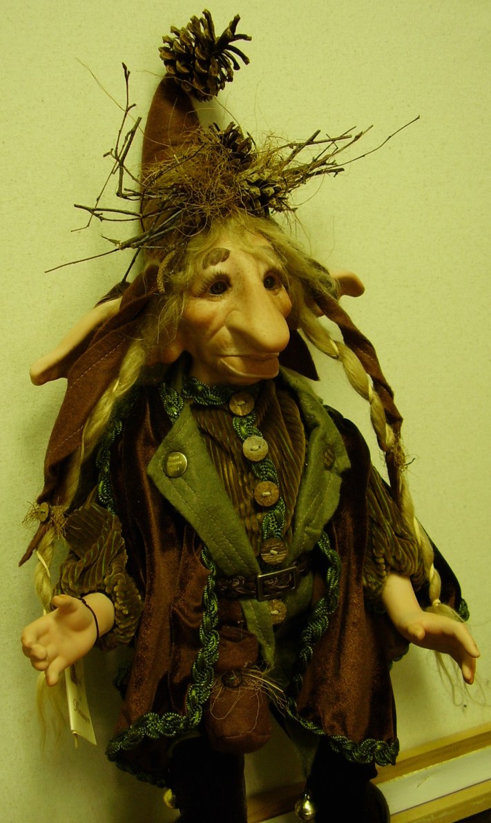 Gnomo artigianale in porcellana di biscuit, altezza 52 cm,