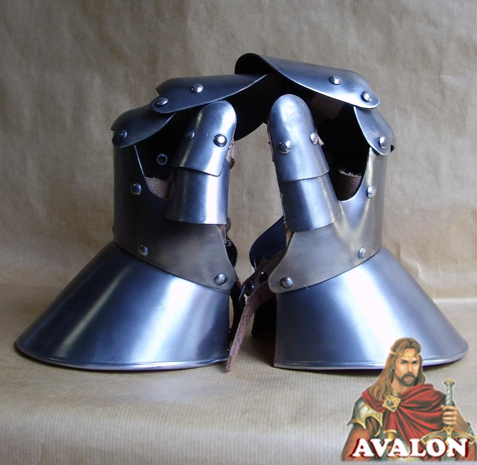 Unica protezione per le quattro dita, e separatamente del pollice, interamente realizzata in ferro lavorato a mano e dotata di coietti in pelle per essere indossata.