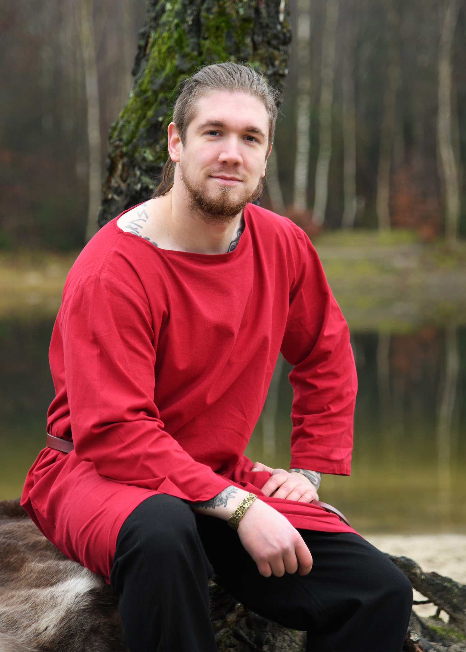 Tunica romana lunga colore rosso, 100% cotone. Adatta per rievocazioni storiche e per manifestazioni.