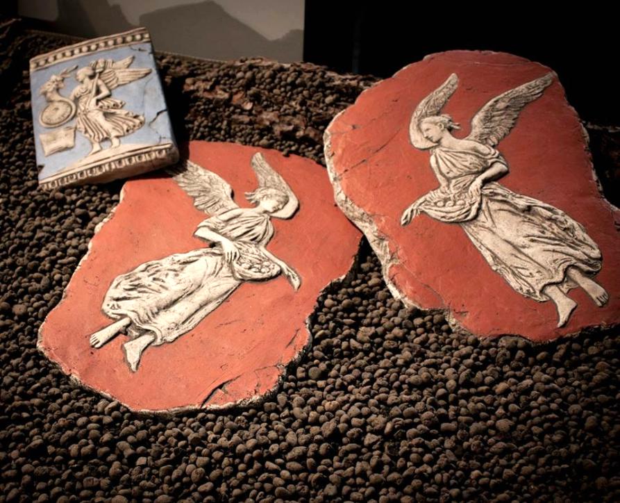 Scultura in Terracotta di epoca romana raffigurante l'Abbondanza, riproduzione di un affresco datato 54—68 d.C. e rinvenuto nella Villa di San Marco a Stabia, scultura in terracotta di epoca romana.