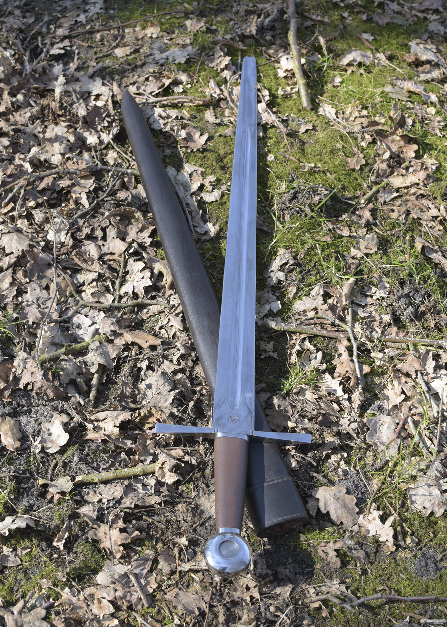 Spada Medievale da combattimento, Spada da pratica senza filo, categoria: SK-B. Riproduzione di una spada con pomo a disco, periodo alto medievale realizzata da Ulfberth® è finemente lavorato a mano.
