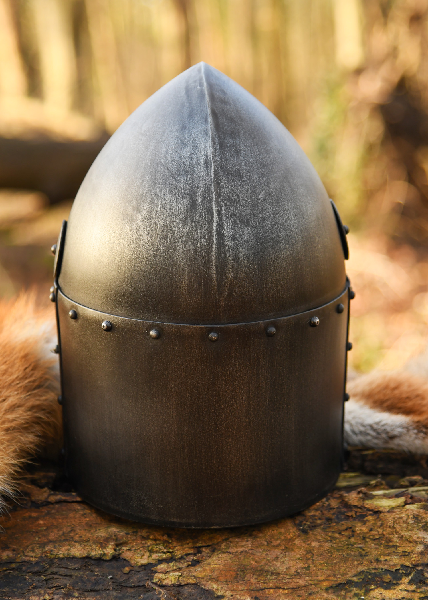 I grandi elmi che si assottigliano fino a un punto in corrispondenza della campana dell'elmo erano anche chiamati elmi Pan di Zucchero nel Medioevo a causa della loro somiglianza con un pan di zucchero.