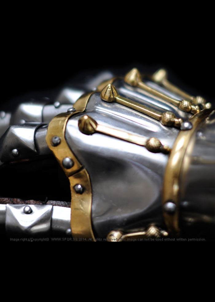 Nel tardo Medioevo e all'inizio dell'età moderna, le manopole erano una parte indispensabile dell'armatura a piastre. Offrivano protezione per le mani e i polsi sia nel combattimento ravvicinato che nelle giostre medievali.