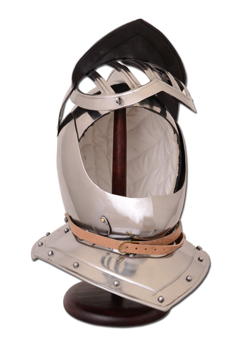 Elmo Borgognotta chiuso con imbottitura interna. Ricostruzione molto fedele di un Elmo Borgognotta con visiera del 17 ° secolo