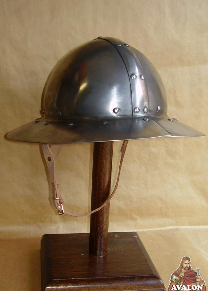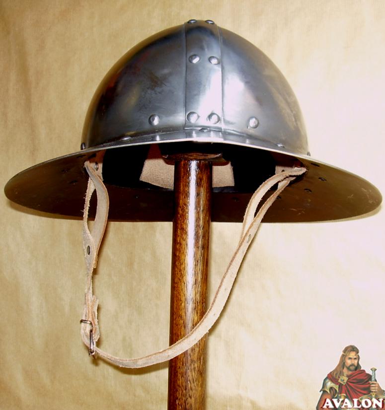 Elmo Balestriere tipico Cappello D'Arme protezione del capo in acciaio, indossabile. Elmo in uso dalla fanteria tra il secolo X e XIV.