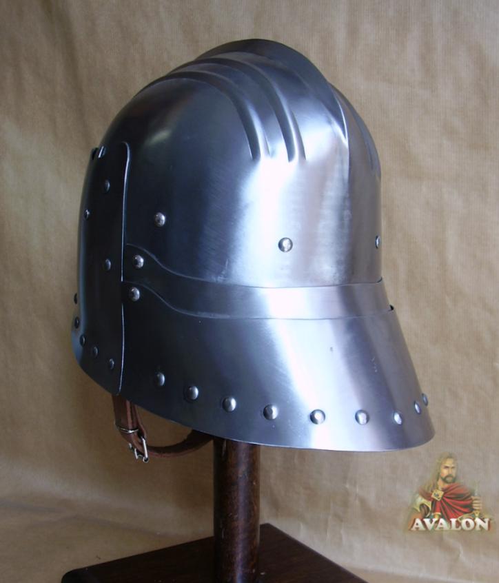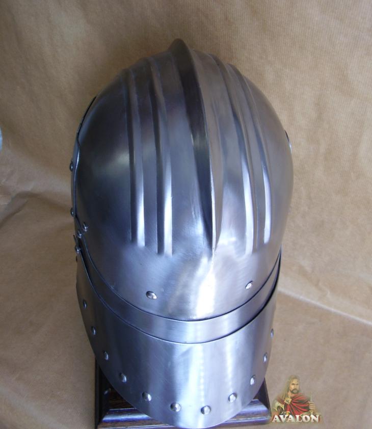 Elmo Celata alla Tedesca, Elmo Medievale Secolo XV, caratterizzato da un grande ed elaborato frontale mobile e da una gronda articolata in tre lame.