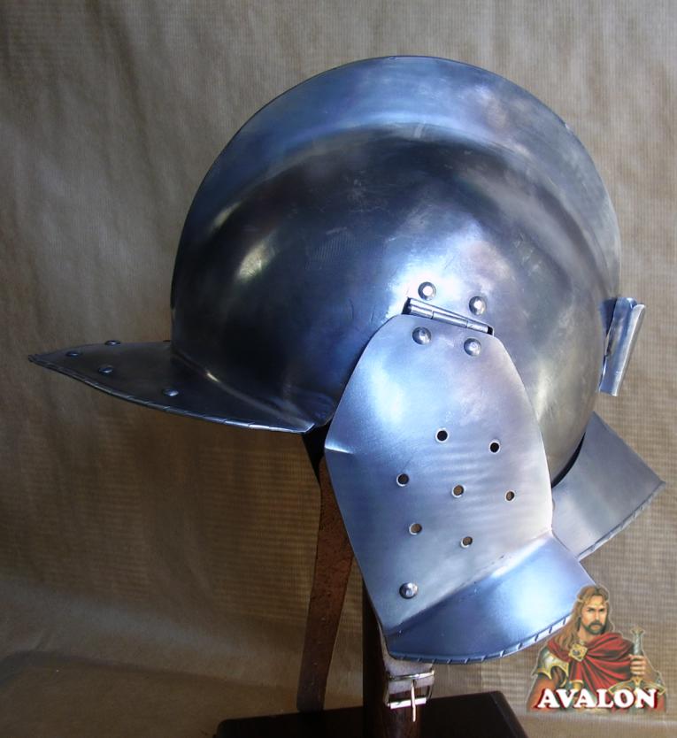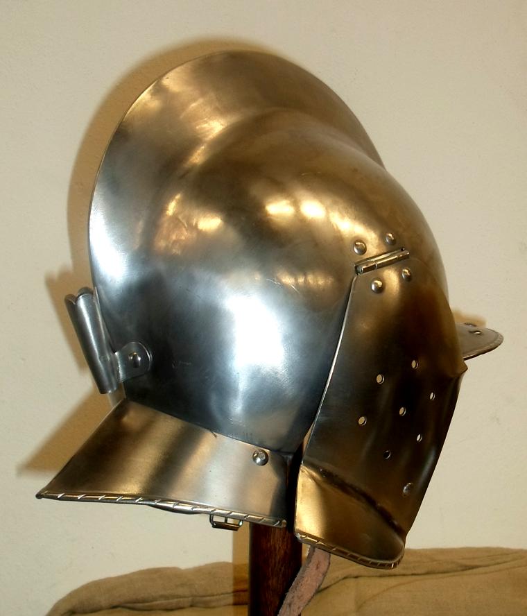 Elmo Borgognotta chiuso composto da due pezzi, usato nelle armatura da cavallo del Secolo XVI, elmo con barbozza e guanciali mobili che si chiudono sul mento.