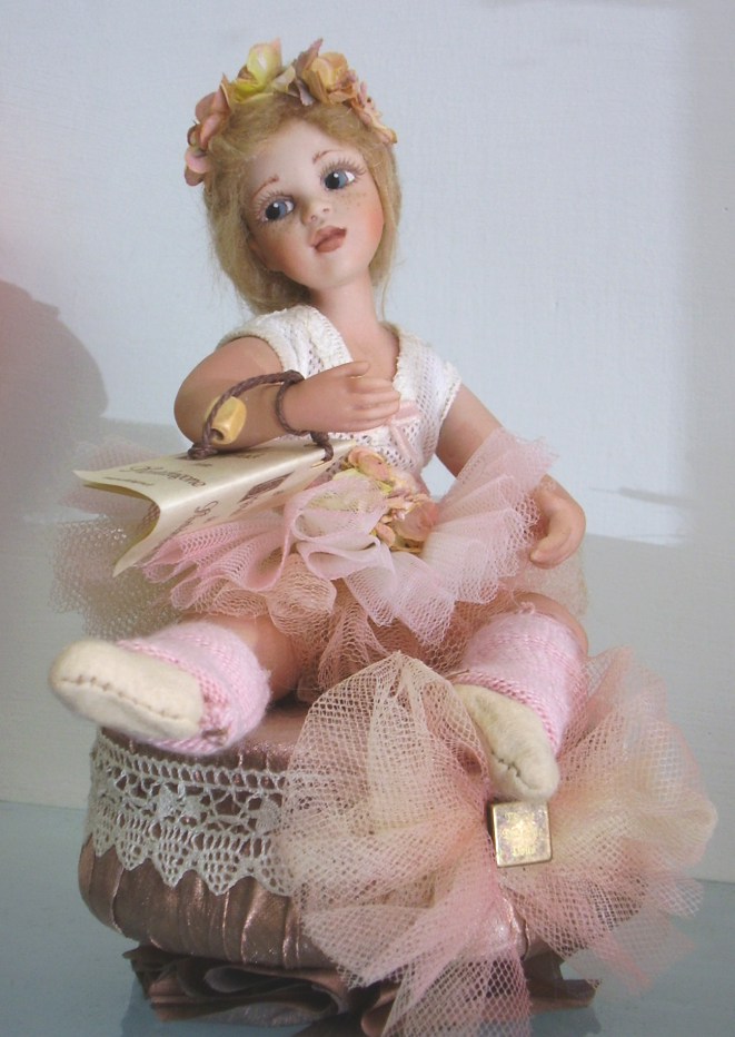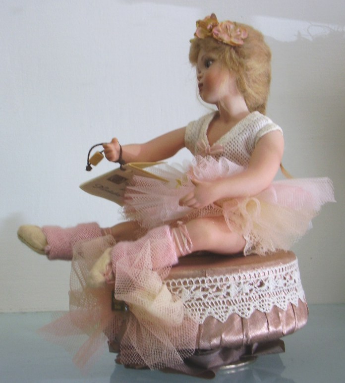 Bambola artigianale in porcellana, denominata Luisa ballerina con carillon, collezione Montedragone.