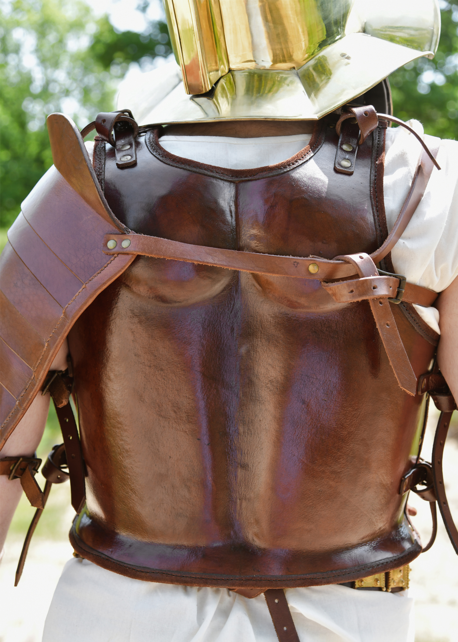 Pettorale in cuoio, Busto in Cuoio con borchie in metallo, parte dell'armatura romana a protezione del torace.