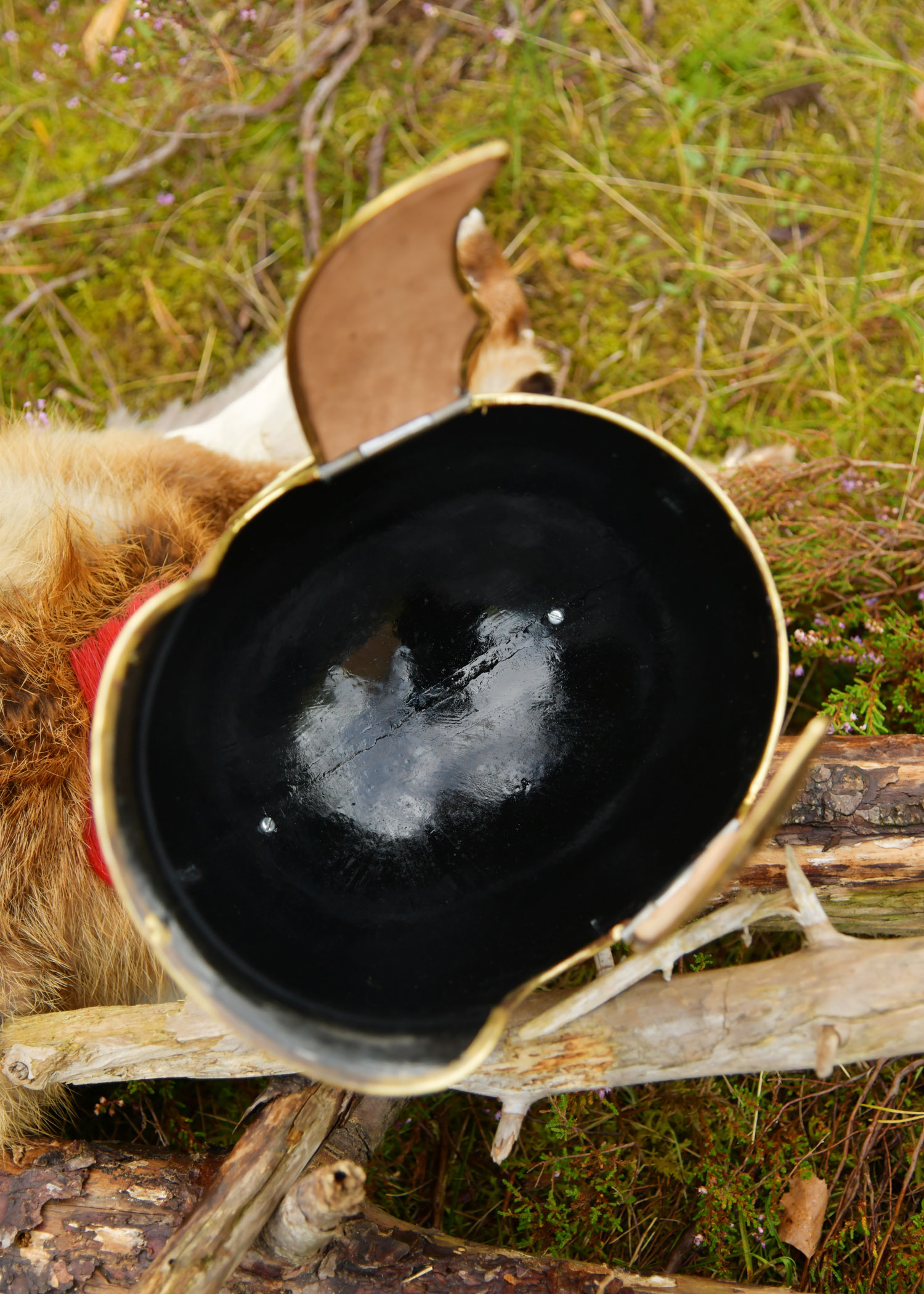 Elmo Greco Corinzio con cresta, tipico elmo greco V Sec. A.C. con cresta in pelle cucita a mano con crine color beige, molto diffuso ...