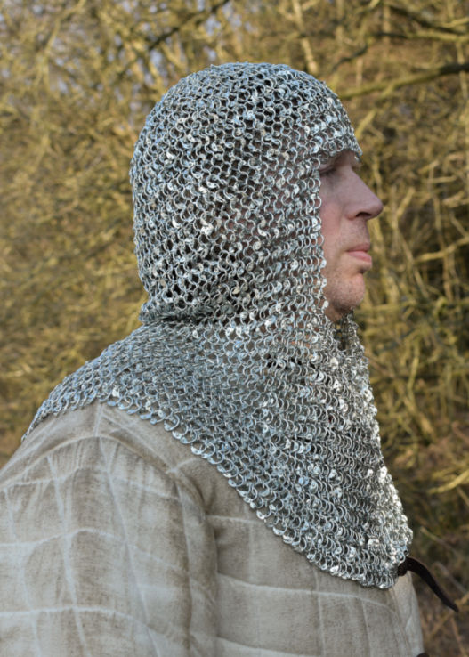 Questa camaglio in cotta di maglia ha un autentico taglio quadrato sul viso ed è a copertura totale delle spalle.