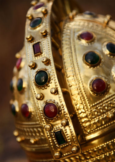 Seguendo il tipico design degli elmi del tardo periodo imperiale, l'elmo di Berkasovo (attuale Serbia) si distingue per la sua eccezionalmente ricca decorazione con pietre preziose e applicazioni in oro e argento. I numerosi elementi spiegano il suo peso considerevole: oltre 4 kg. Le elaborate decorazioni suggeriscono un indossatore del più alto grado di ufficiale.