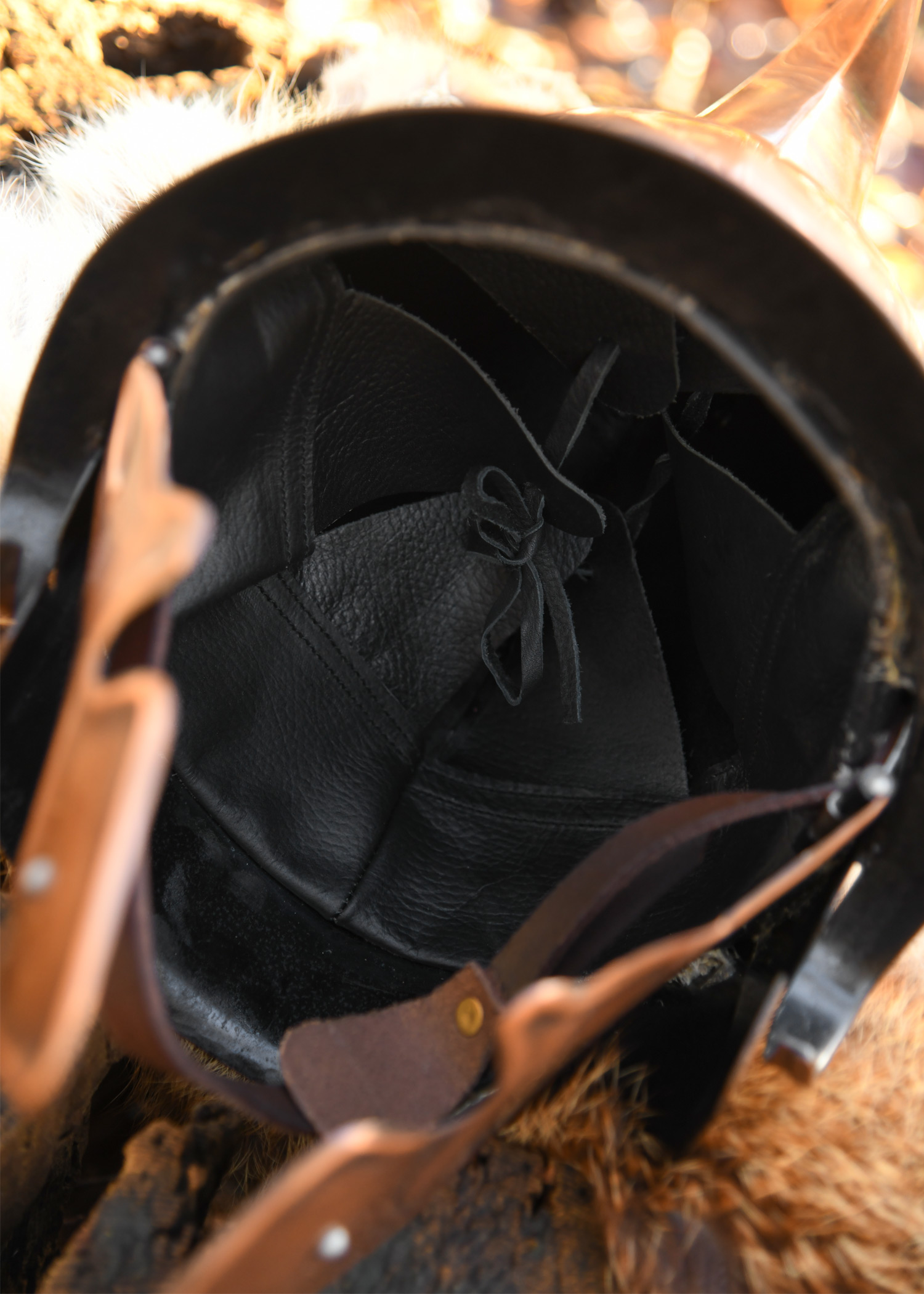 Elmo da Oplita - Elmo ateniese realizzata in acciaio con una finitura bronzata. Elmo indossato dai soldati di fanteria nella falange macedone sotto Alessandro Magno