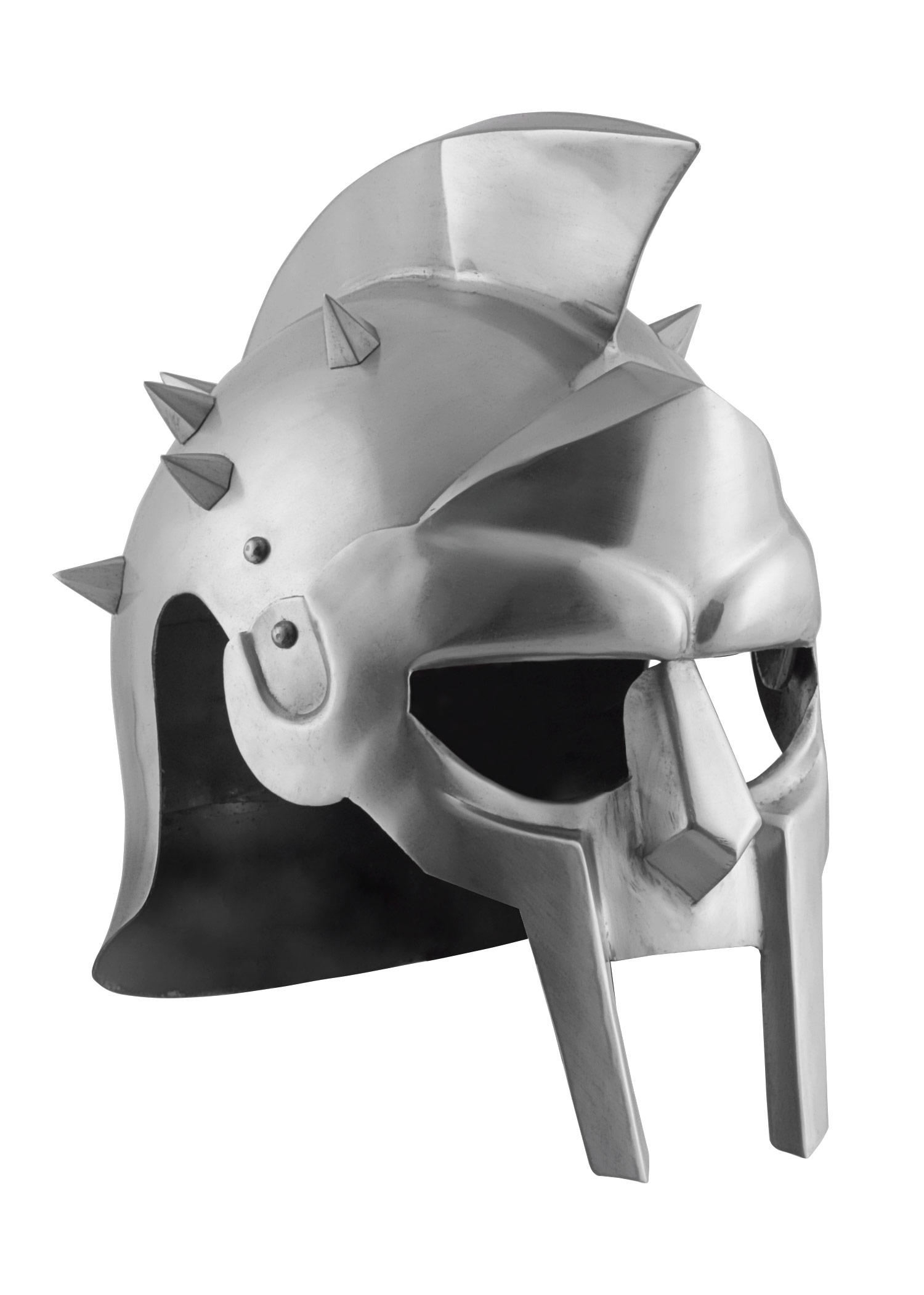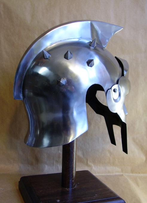 Elmo del Gladiatore, indossato da Massimo Decimo Meridio dell'arena per incutere timore nei propri avversari e nascondere allo stesso tempo la sua vera identità. Realizzato in ferro lavorato a mano. Dotato di una maschera dal disegno originale con spunzone ad altezza fronte.
