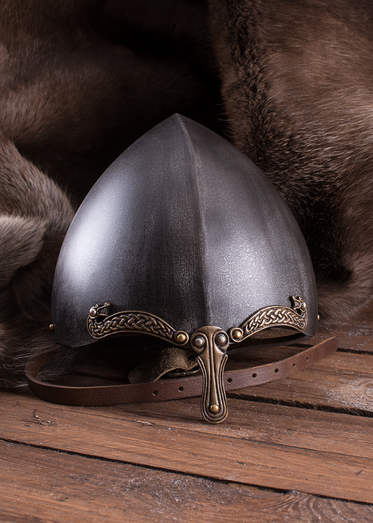 Mentre la sua forma complessiva (ciotola conica, paranaso) ricorda fortemente gli elmi normanni del primo e dell'alto medioevo, le distintive sopracciglia e il naso a forma di animale sono modellati su motivi celtici/norvegesi.