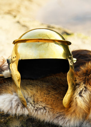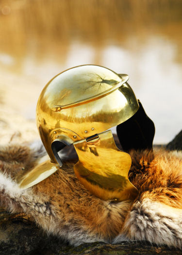 Replica altamente autentica di un elmo da fanteria ausiliaria romana della seconda metà del I secolo d.C., rinvenuto nel Reno, vicino a Magonza.