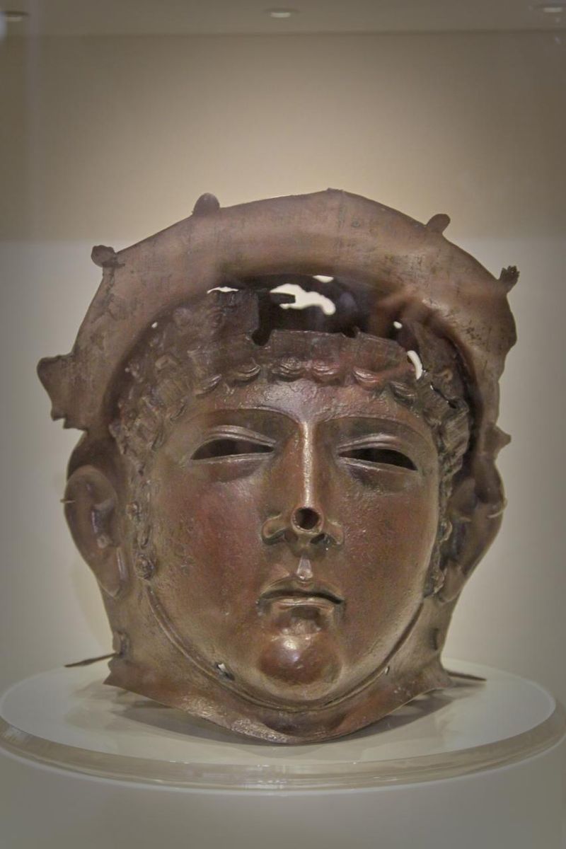 Conosciuto anche come elmo di Ribchester dalla località inglese dove venne ritrovato nel 1796. Realizzato interamente in metallo ottonato lavorato a mano, mentre la maschera è in stagno fuso e sbalzato.