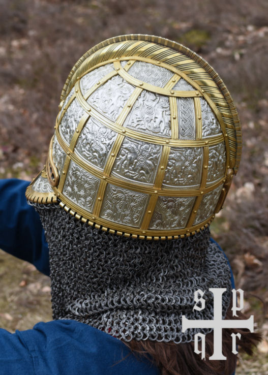 Questo Vendelhelm bellissimo e molto dettagliato è una replica di un ritrovamento originale dalla tomba della nave a Valsgärde (Bootsgrab 8), una fattoria sulle rive del fiume Fyris (Fyrisån) vicino a Old Uppsala (Gamla Uppsala), Svezia.