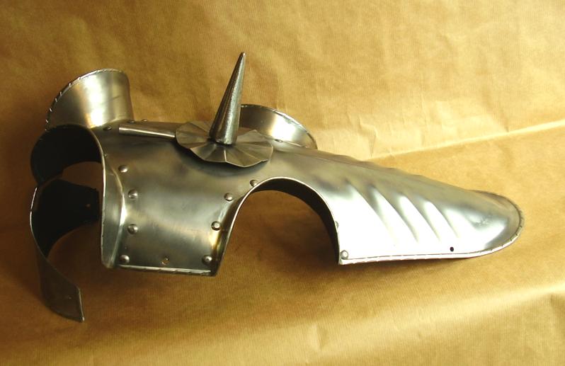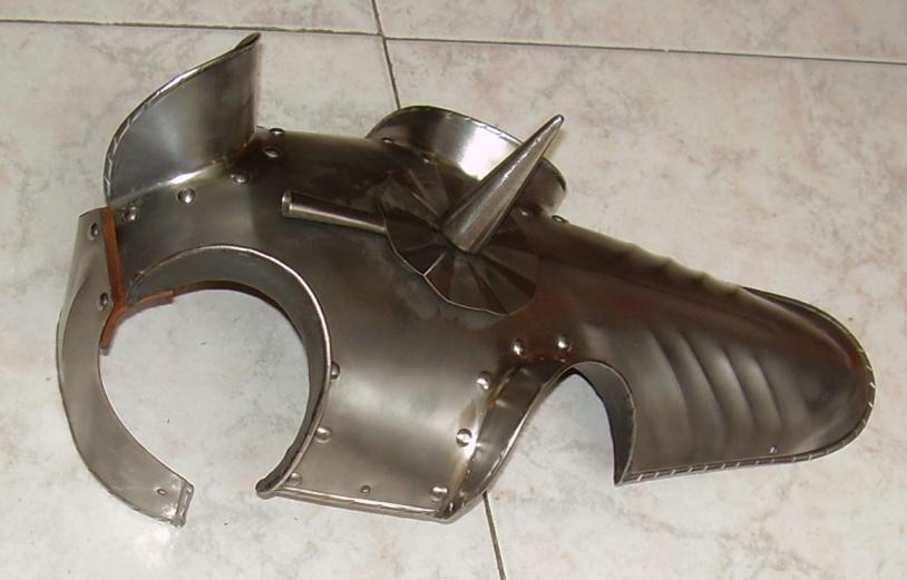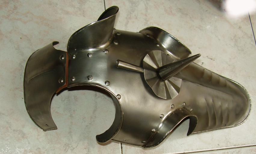 Frontale o testiera, parte dell'armatura preposta alla difesa della testa del cavallo, formata da una piastra sagomata con feritoie per garantire al cavallo la visuale e da uno spuntone Realizzata in acciaio interamente lavorato a mano e pienamente indossabile.