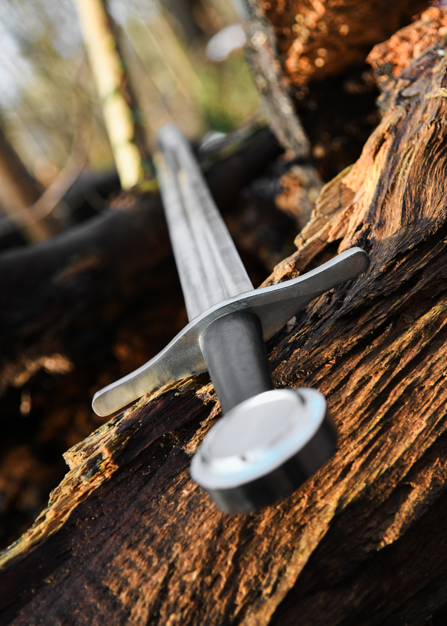 Spada normanna diffusa dal XIII a tutto il XIV secolo. Presenta una lama in acciaio a doppio filo, larga sotto l'elsa e che va restringendosi in maniera pronunciata verso la punta aumentando l'efficacia del colpo di stocco.