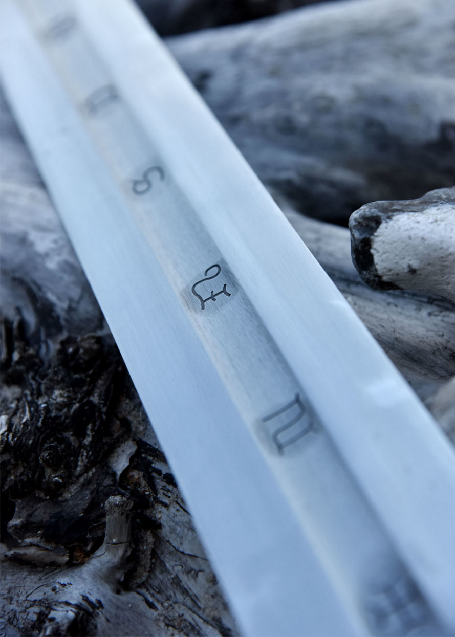 La spada a una mano che offriamo qui è una riproduzione fedele di questo bellissimo pezzo di storia medievale. Le incisioni sull'ampia sgusciatrice della lama in acciaio per molle EN45 a doppio taglio replicano fedelmente i segni che adornano l'originale.