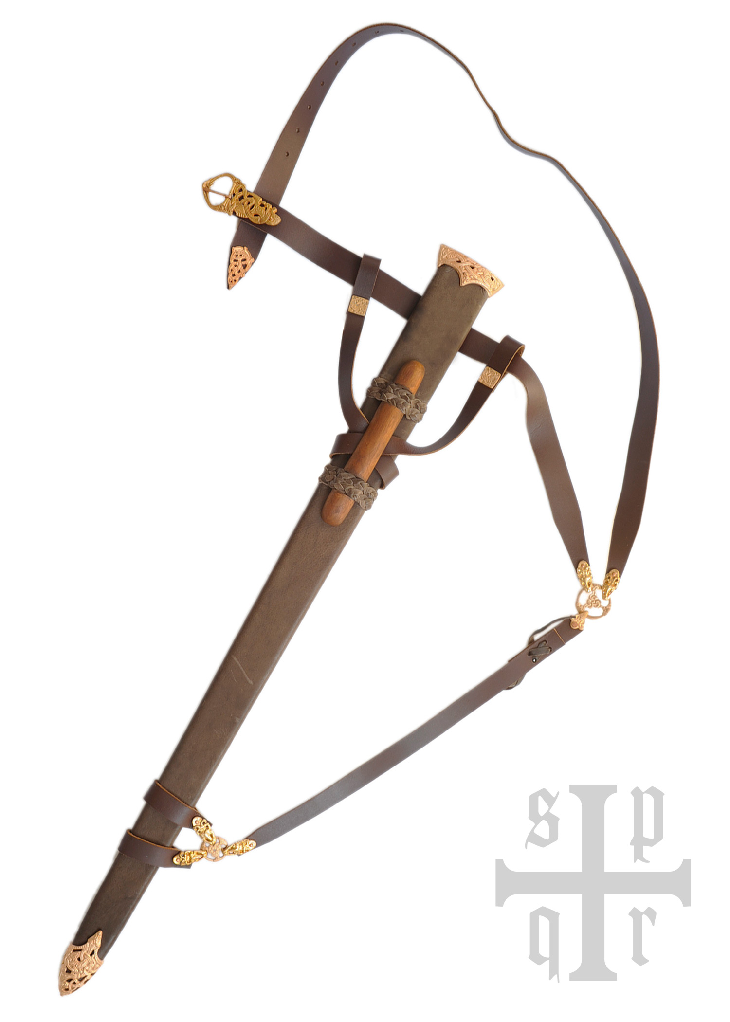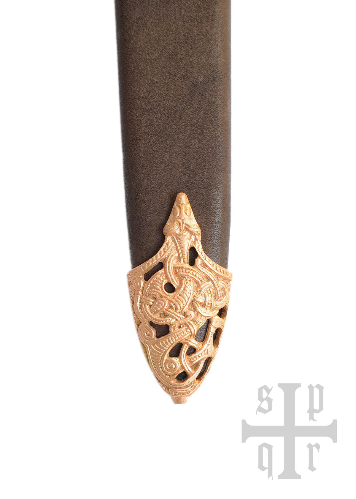 Questa bellissima spada a una mano dell'età vichinga è modellata su un ritrovamento di palude datato alla metà. IX secolo e classificato come tipo "K" secondo la tipologia delle spade vichinghe di Petersen. Il pezzo originale, straordinariamente ben conservato, è stato trovato a Ballinderry (Irlanda) nel 1928 ed è ora esposto al National Museum of Ireland di Dublino.