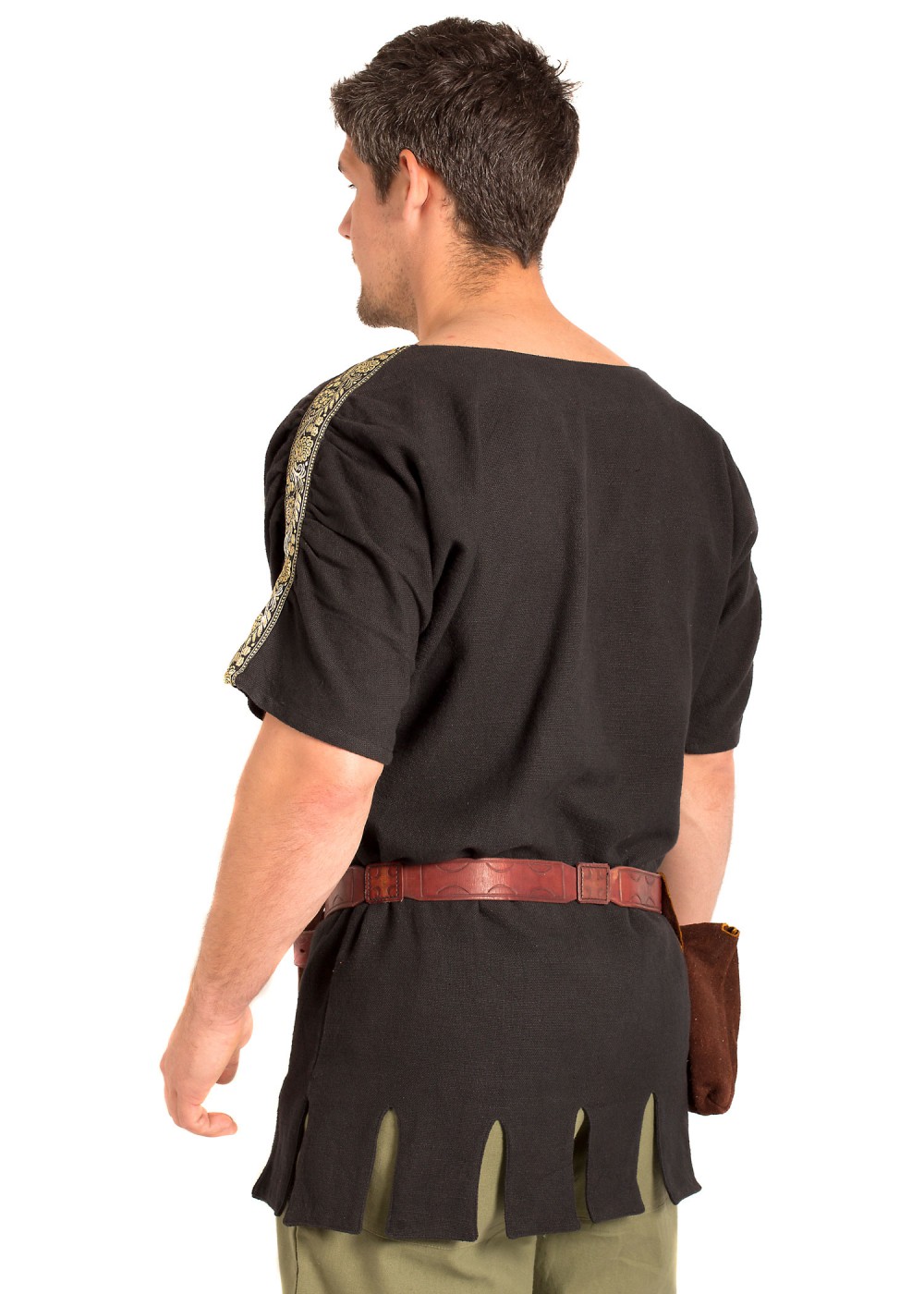 Tunica romana a maniche corte lunga fino al ginocchio, colore nero scuro, 100% cotone. Adatta per rievocazioni storiche e per manifestazioni.