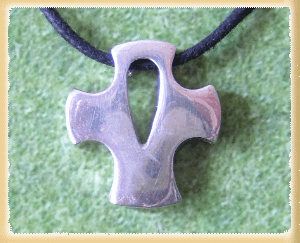 Riproduzione dell antica croce uncinata, con laccetto in cotone cerato. Argento 925. Dimensioni 20x20 mm
