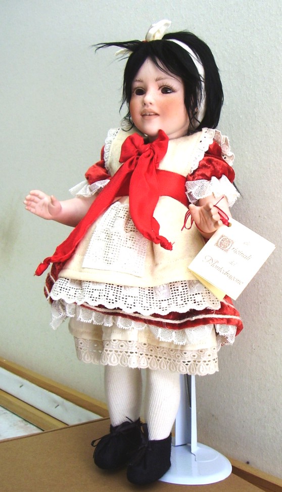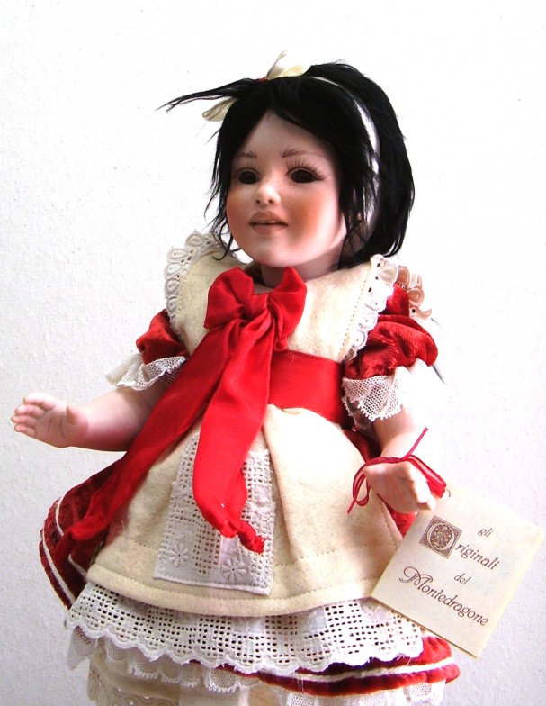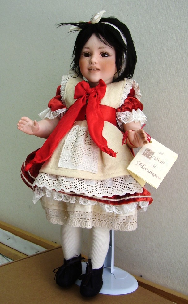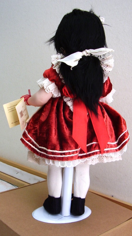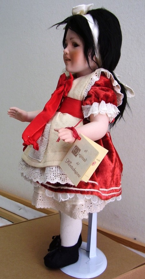 Materiali: la bambola è interamente in porcellana. Il corpo è mobile. È possibile modificare la posizione della bambola, cambiando la posizione della sua testa.