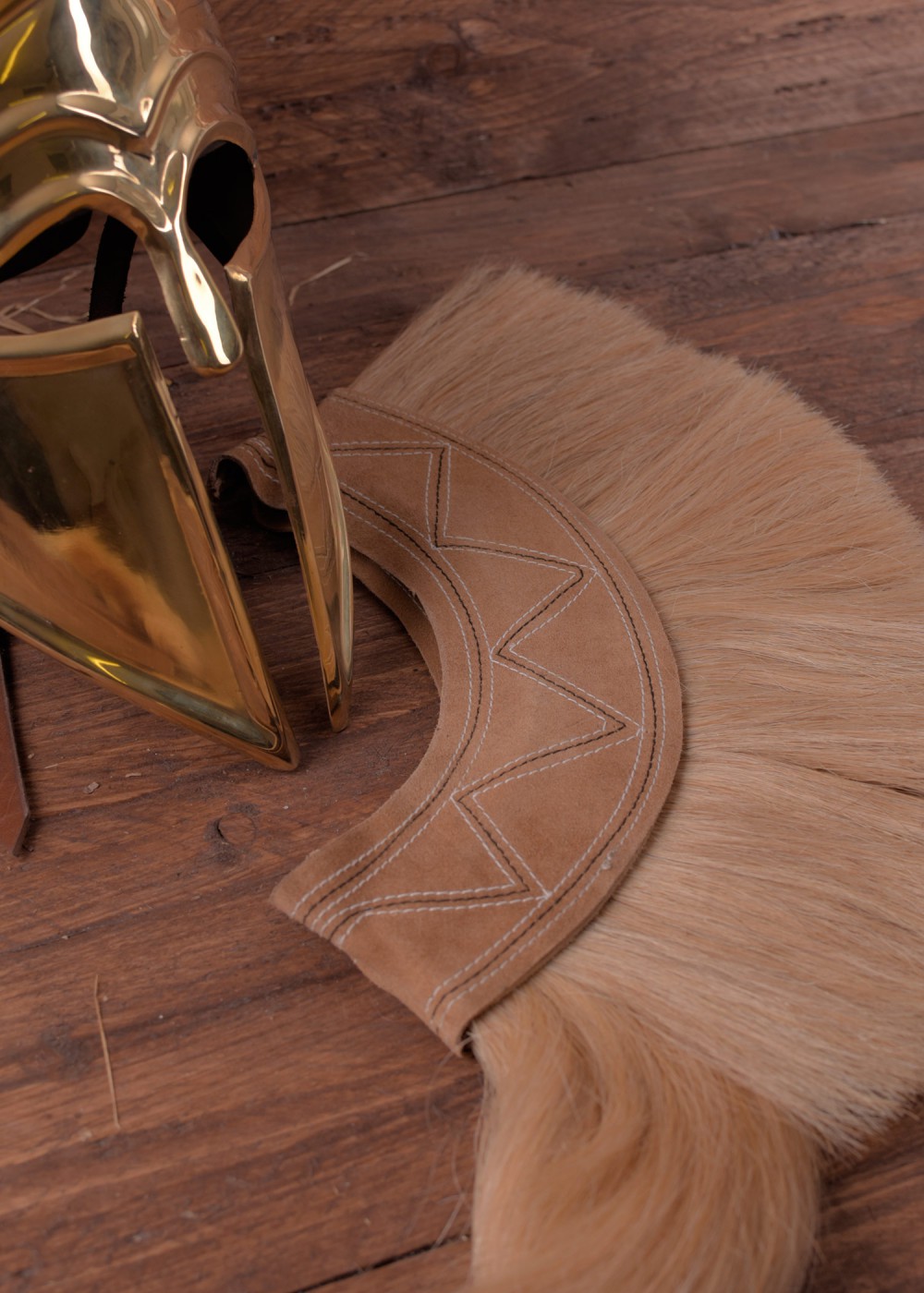 Cresta in crine per Elmo Corinzio, realizzata in pelle con supporto in legno, crine color beige.