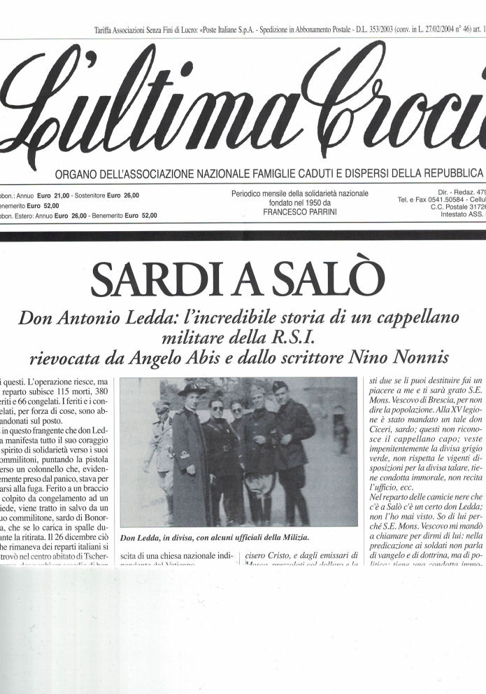 A settant’anni dalla fine della Seconda Guerra Mondiale, il volume raccoglie e presenta con un ampio corredo storico e iconografico l’unico epistolario di un legionario dei “Battaglioni M” mai pubblicato fino ad oggi. Nino Solinas discende da una famiglia che dalla Sardegna approda a Novi Ligure; studente di liceo a Genova, si arruola volontario nel 1941 a Savona es sarà militare sul Fronte Jugoslavo prima e su quello Russo poi, in un percorso di cui rimane traccia grazie alle lettere e alle cartoline inviate ai familiari. Tra propaganda e storia, tra mito e realtà, i valori, le aspirazioni, la vita e la tragedia di un ventenne che scelse di combattere e morire per un ideale chiamato Patria. .