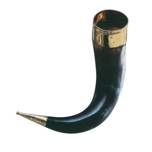 | Corno per libagioni realizzato in corno naturale con le estremità, punta e colletto, rivestite in metallo ottonato. Provvisto di treppiede in metallo dove essere riposto. Adatto ad essere utilizzato in manifestazioni e rievocazioni storiche di epoca antica e medievale. In corno naturale.