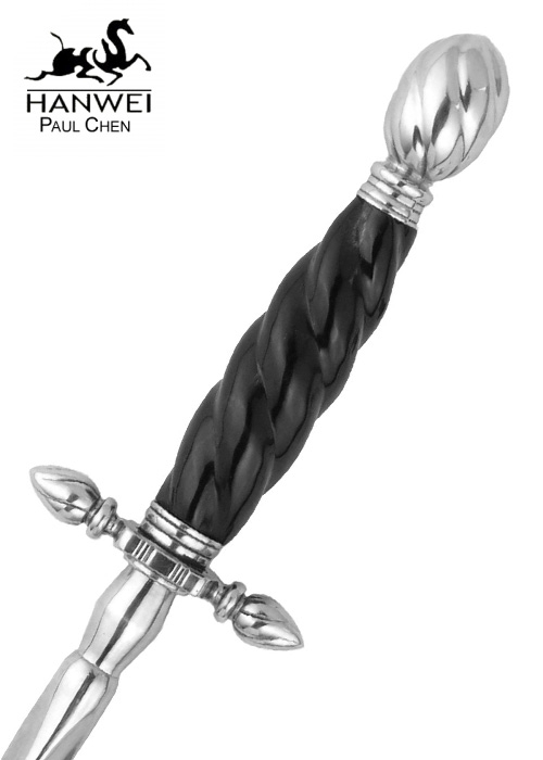 Riproduzione di uno Stiletto del 17 ° secolo da una collezione privata. Progettato esclusivamente come un'arma da penetrazione attraverso le cotte di maglia, lo stiletto è stato diffuso nel periodo in cui l'abito civile di alta classe includeva un arma.