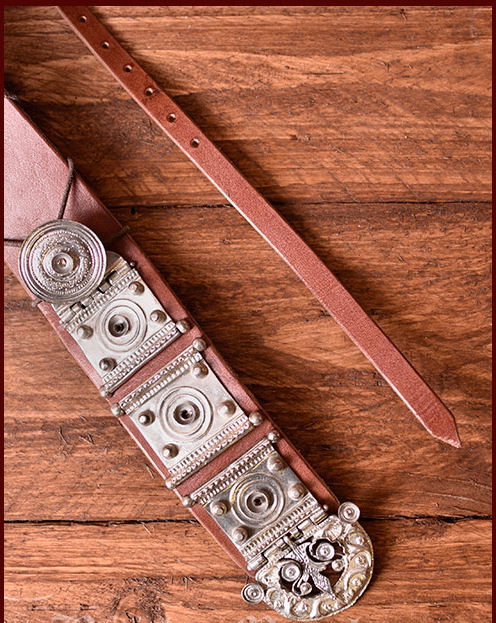 Riproduzione di un Cinturone da Centurione Romano borchie quadrate in metallo (generalmente bronzo ricoperto di stagno) lavorate a rilievo con varie figure geometriche.