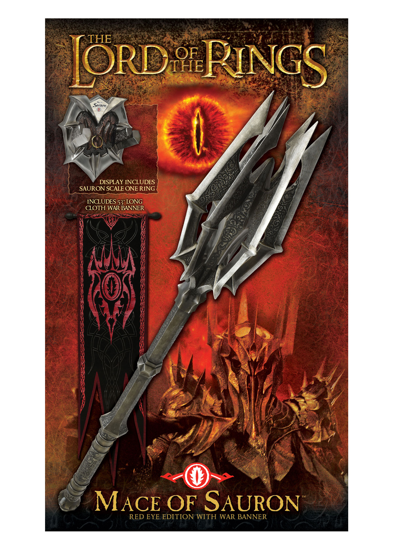 Questo bellissimo pezzo è una riproduzione della massiccia mazza brandita dal Signore Oscuro Sauron nel prologo de Il Signore degli Anelli: La Compagnia dell'Anello.