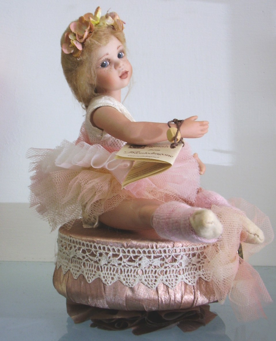 Bambola artigianale in porcellana, denominata Luisa ballerina con carillon, collezione Montedragone.
