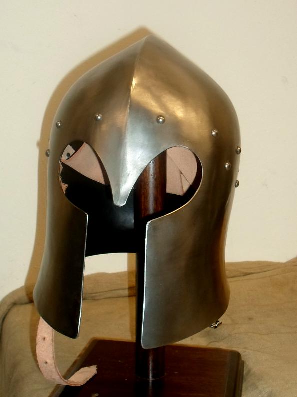 Elmi Medievali produzione e vendita, tutte le tipologie di elmi medievali: Elmo Cervelliera, Spangenhelm, elmo conico normanno, Elmo Bacinetto, Elmo Barbuta, Elmi da Combattimento, Grande Elmo Templare, Elmo da cavaliere, elmo celata alla veneziana, cappello di ferro.