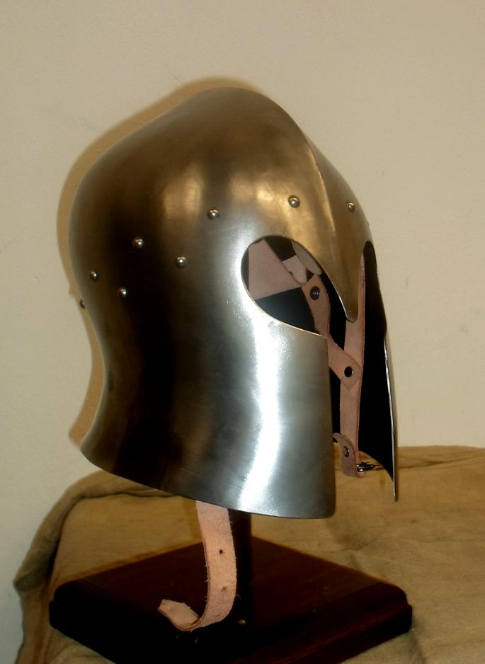 Elmo Barbuta chiamato anche Celata alla Veneziana, elmo molto diffuso nel XIV e il XV secolo, aderente alla testa con protezione del ...
