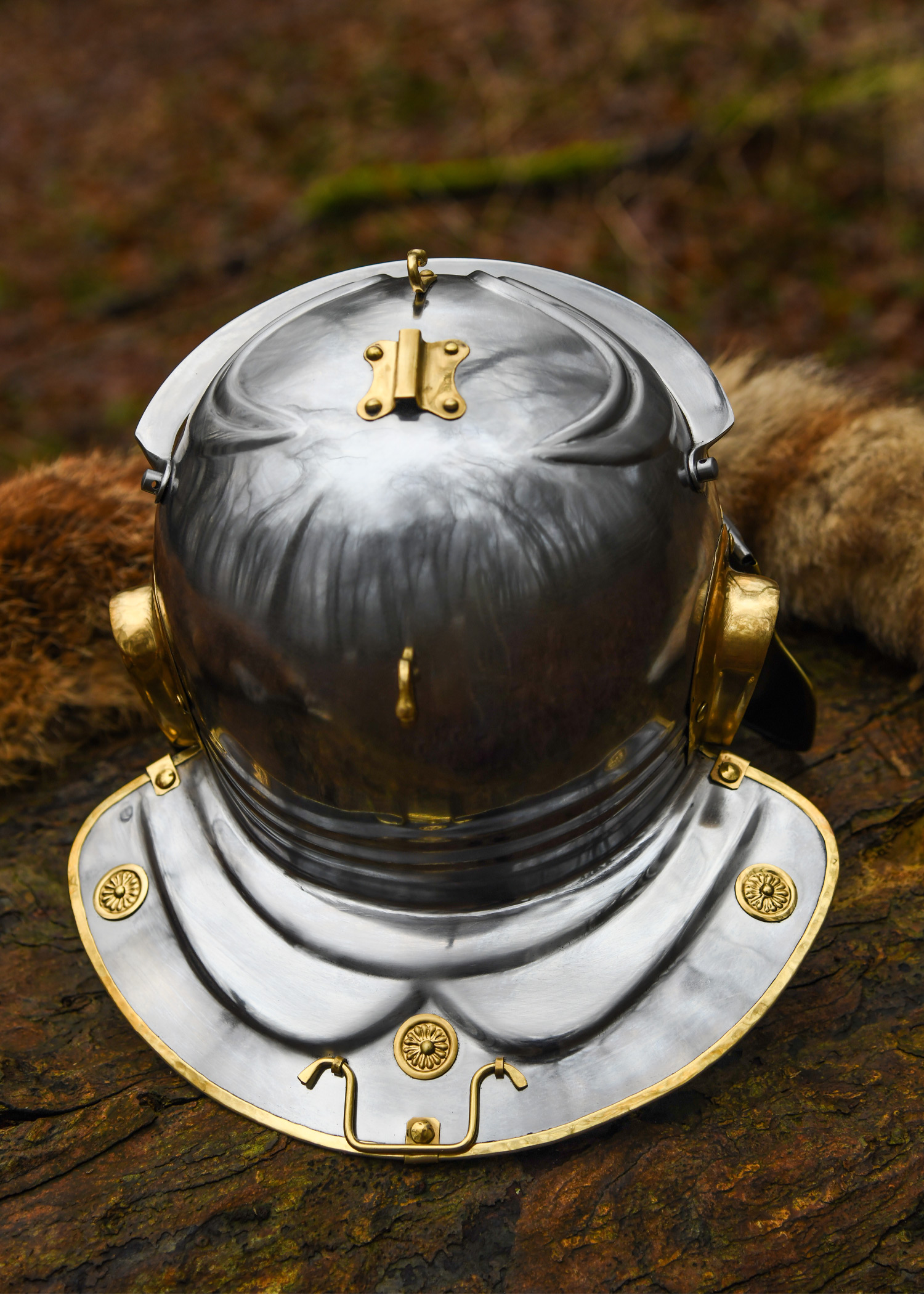 Elmi Medievali produzione e vendita, tutte le tipologie di elmi medievali: Elmo Cervelliera, Spangenhelm, elmo conico normanno, Elmo Bacinetto, Elmo Barbuta, Elmi da Combattimento, Grande Elmo Templare, Elmo da cavaliere, elmo celata alla veneziana, cappello di ferro.
