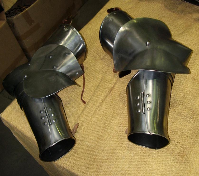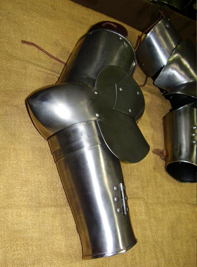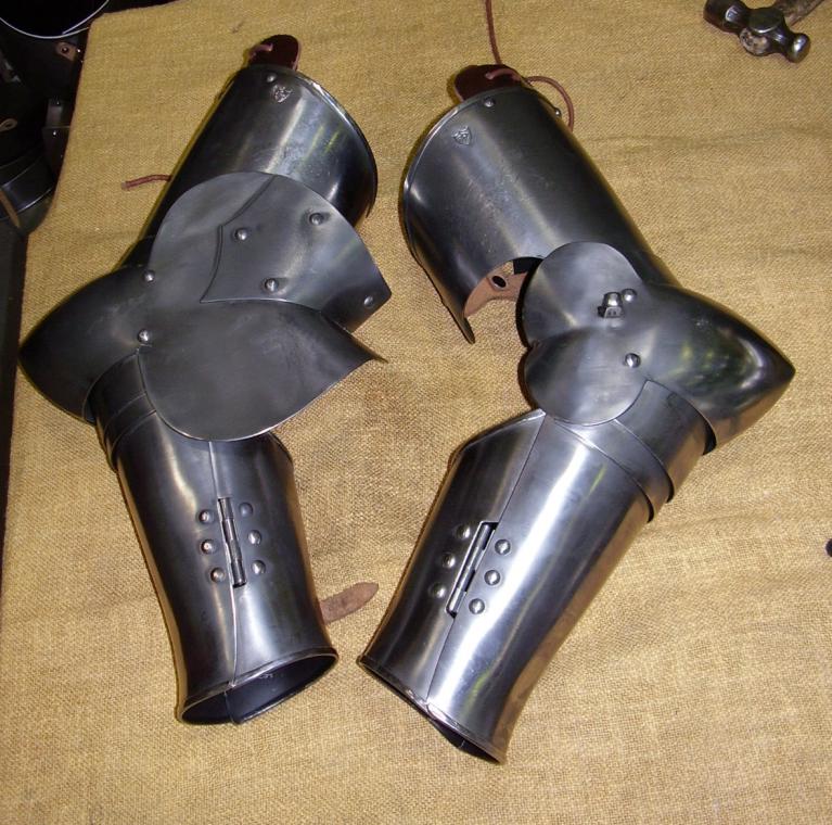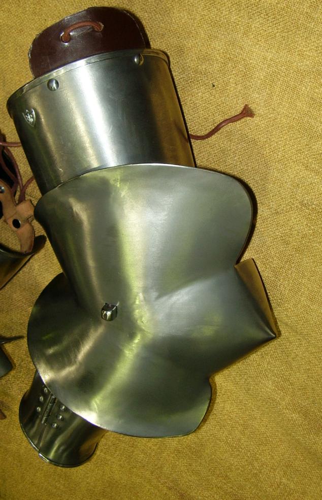 Parte di armatura medievale a protezione del braccio, equipaggiato con cinghie in cuoio per essere indossato.