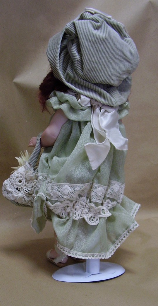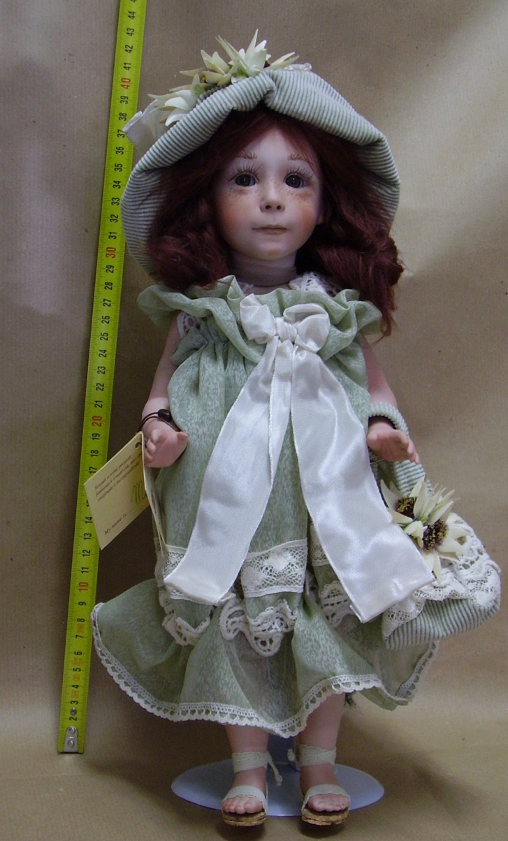 La bambola è prevista con occhi dipinti, ma si può avere anche con occhi di vetro con una maggiorazione di 12 euro. Tutte le parti sono realizzate in porcellana bisquit. I costumi sono realizzati con i migliori tessuti e accessori. La bambola in porcellana è realizzata come esposta nell'immagine indicata - dai capelli alle scarpe, alle mani. Le espressioni del viso, i colori, il trucco sono elementi che vengono creati singolarmente per ogni bambola. Ogni dettaglio delle bambole è fatto a mano, considerate ogni elemento come un oggetto d'arte. I migliori tessuti, l'abbigliamento cucito a mano con antichi metodi tradizionali tutti elementi che contribuiscono ad aumentare il fascino di ogni bambola. Materiali: la bambola è interamente in porcellana. Il corpo è mobile. È possibile modificare la posizione della bambola, cambiando la posizione della sua testa.